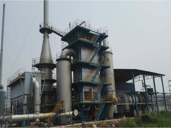 采用重油、廢溶劑為加熱介質(zhì)。將在流化造粒塔生成的含有機物的混合污鹽加入回轉(zhuǎn)焙燒爐內(nèi)焙燒。在高溫下污鹽中的有機物氣化熱解。焙燒后的無機鹽外送綜合利用或填埋。焙燒產(chǎn)生的煙氣經(jīng)焚燒爐二次焚燒,將煙氣中有機物完全氧化成CO2、H2O、HCl、S